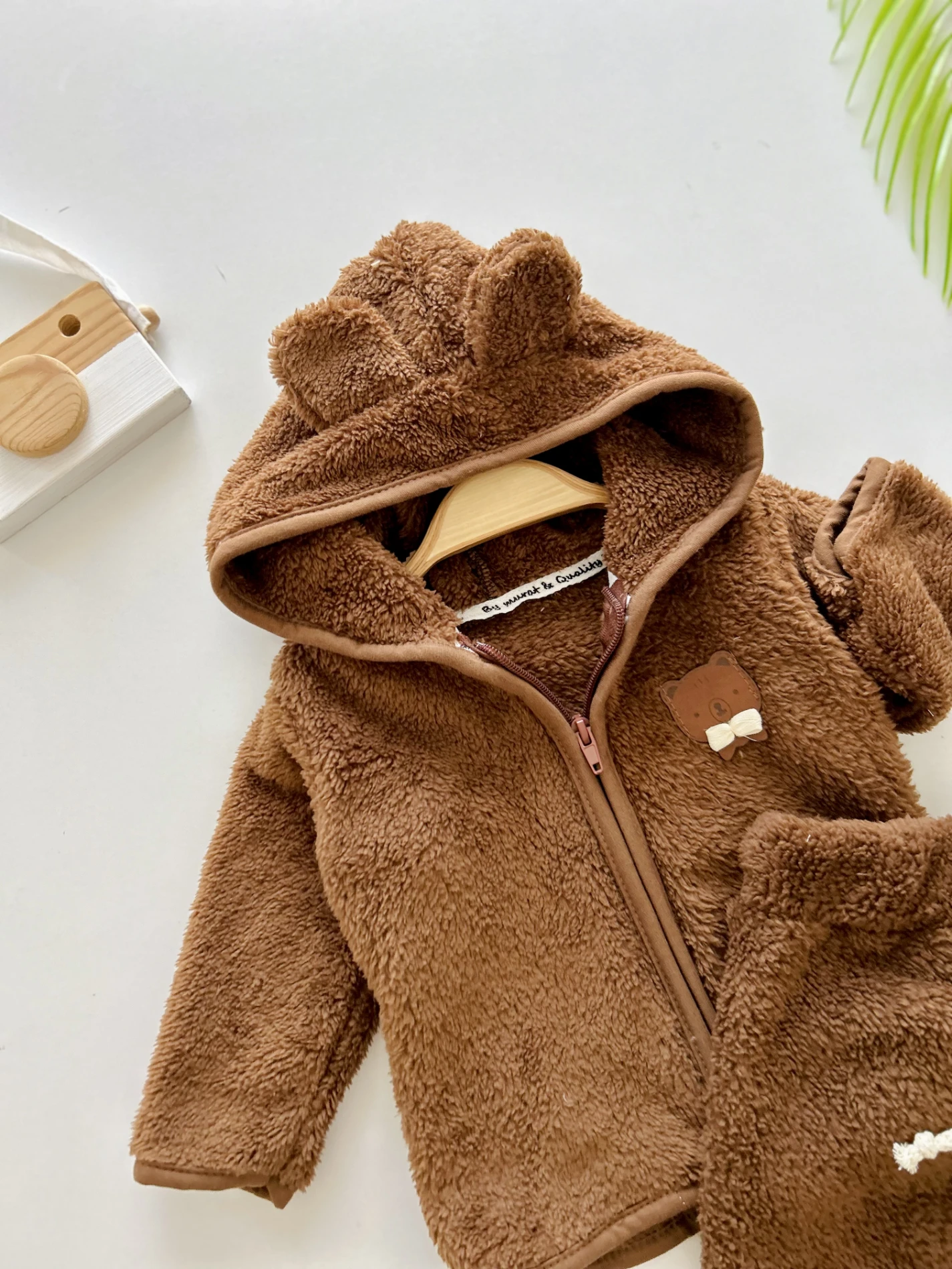 Bear Kulaklı Kapüşonlu Welsoft Hırkalı Peluş 2’li Kışlık Takım