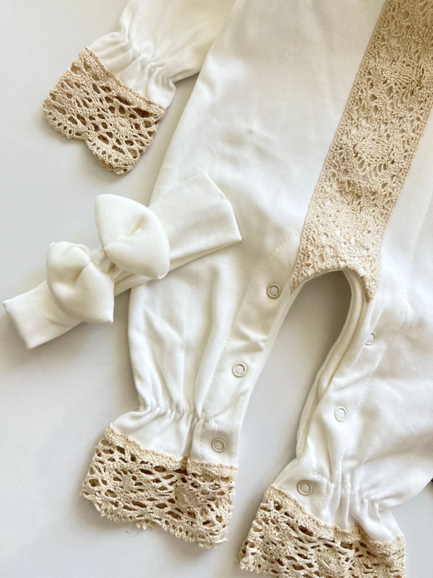 Güpür Detaylı Bandanalı %100 Pamuk Mevsimlik Tulum