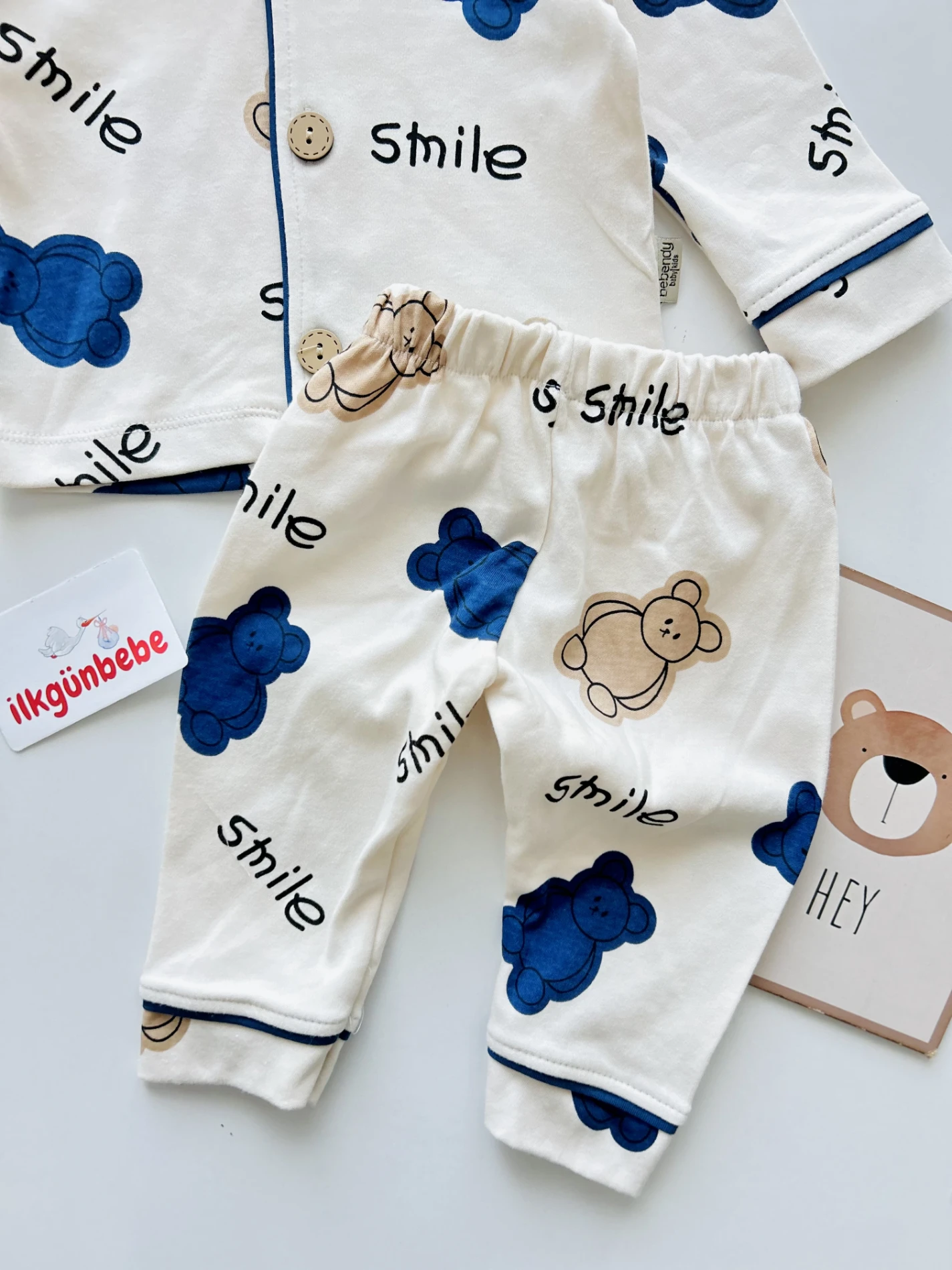 Hello Smile Bear Bebe Yakalı %100 Pamuk Yumuşacık Kumaş 2’li  Pijama Takımı