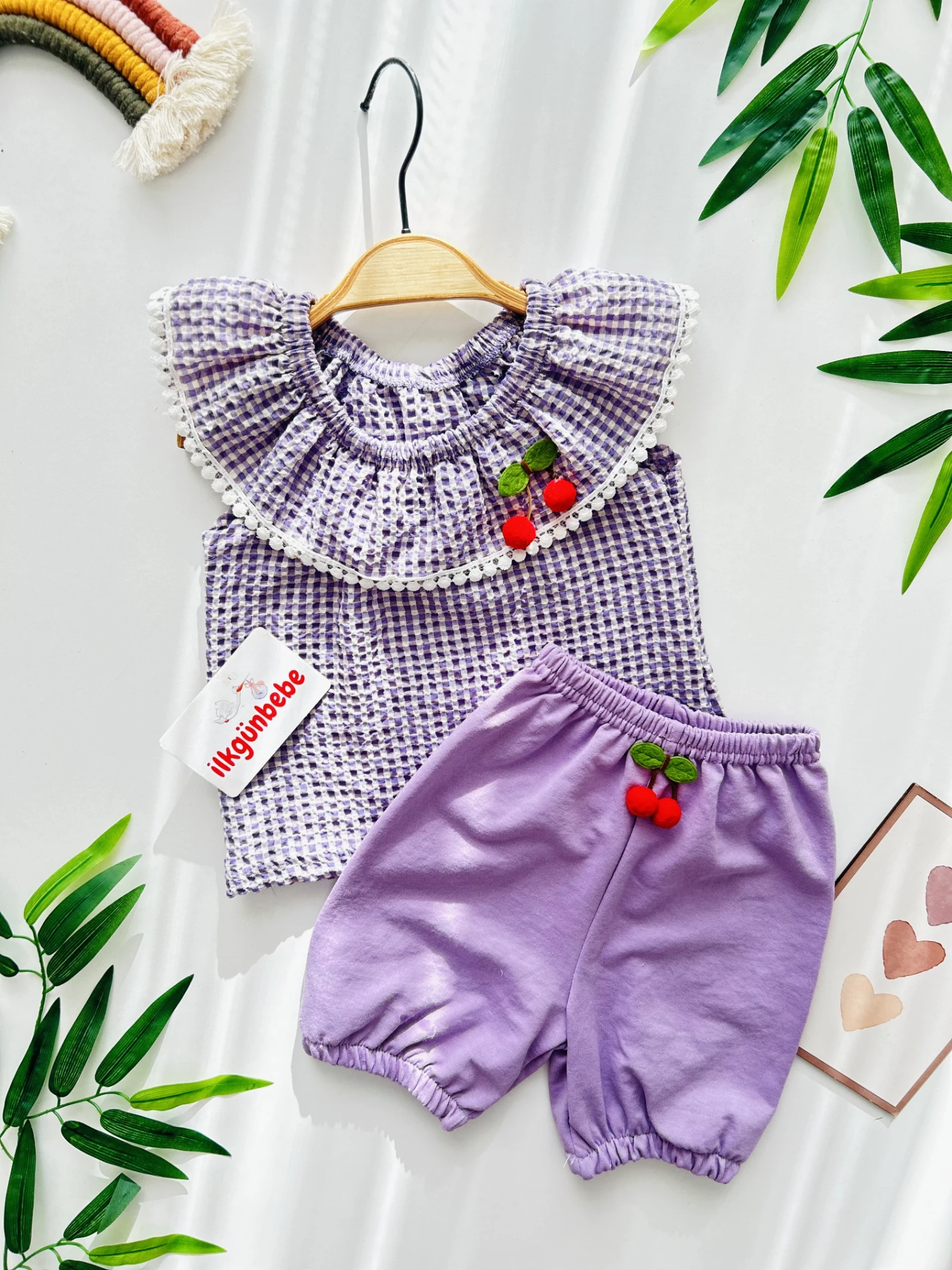 Kiraz Detaylı Ekose Desenli Yazlık Takım