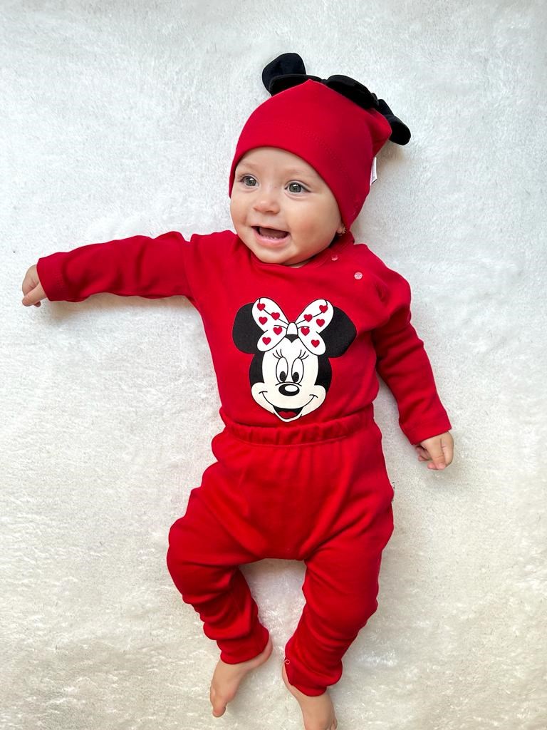 Minnie Mouse Baskılı %100 Pamuk Şapkalı Mevsimlik 3'lü Takım