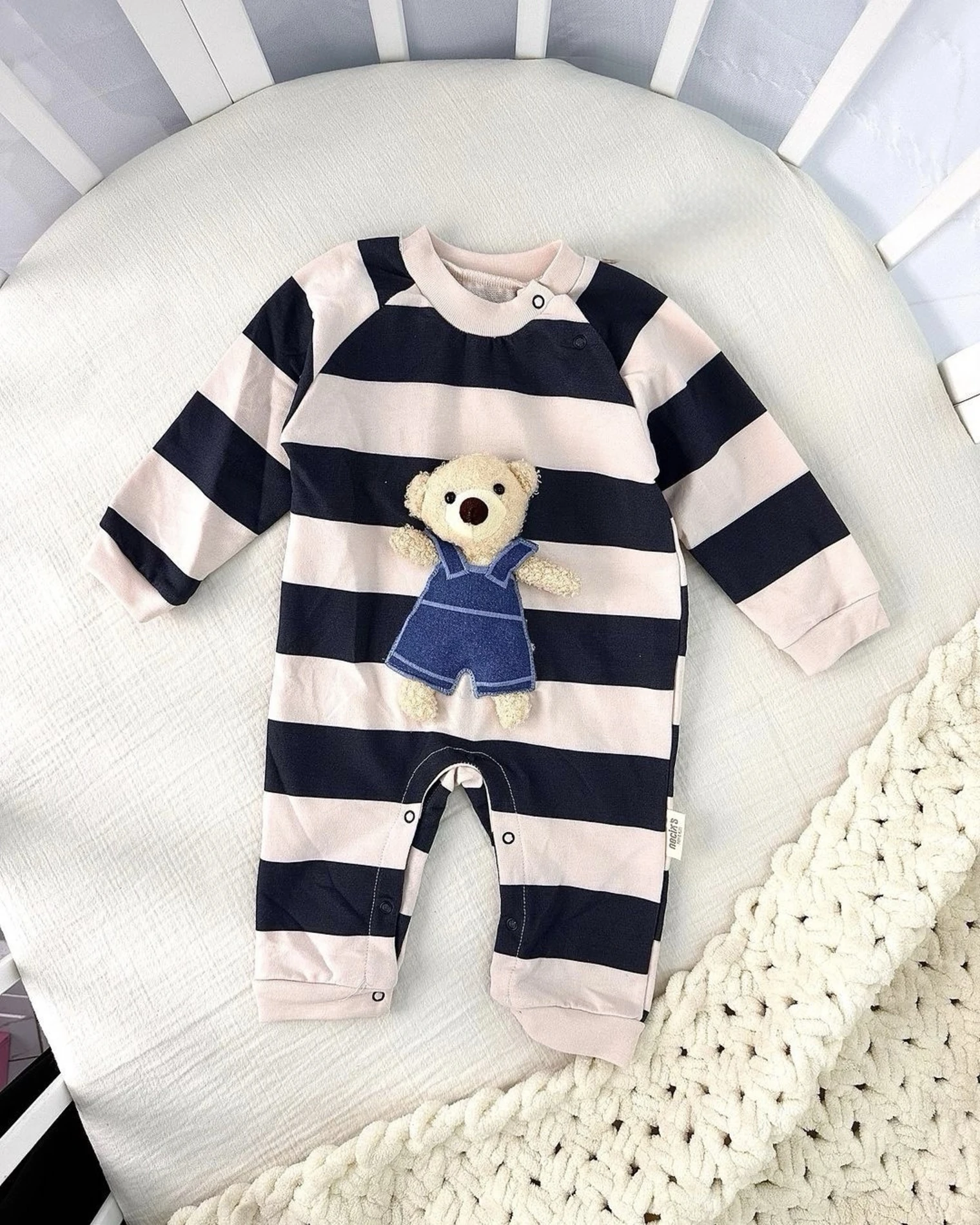 Oyuncak Ayılı Alttan Ve Omuzdan Çıtçıtlı Unısex Tulum