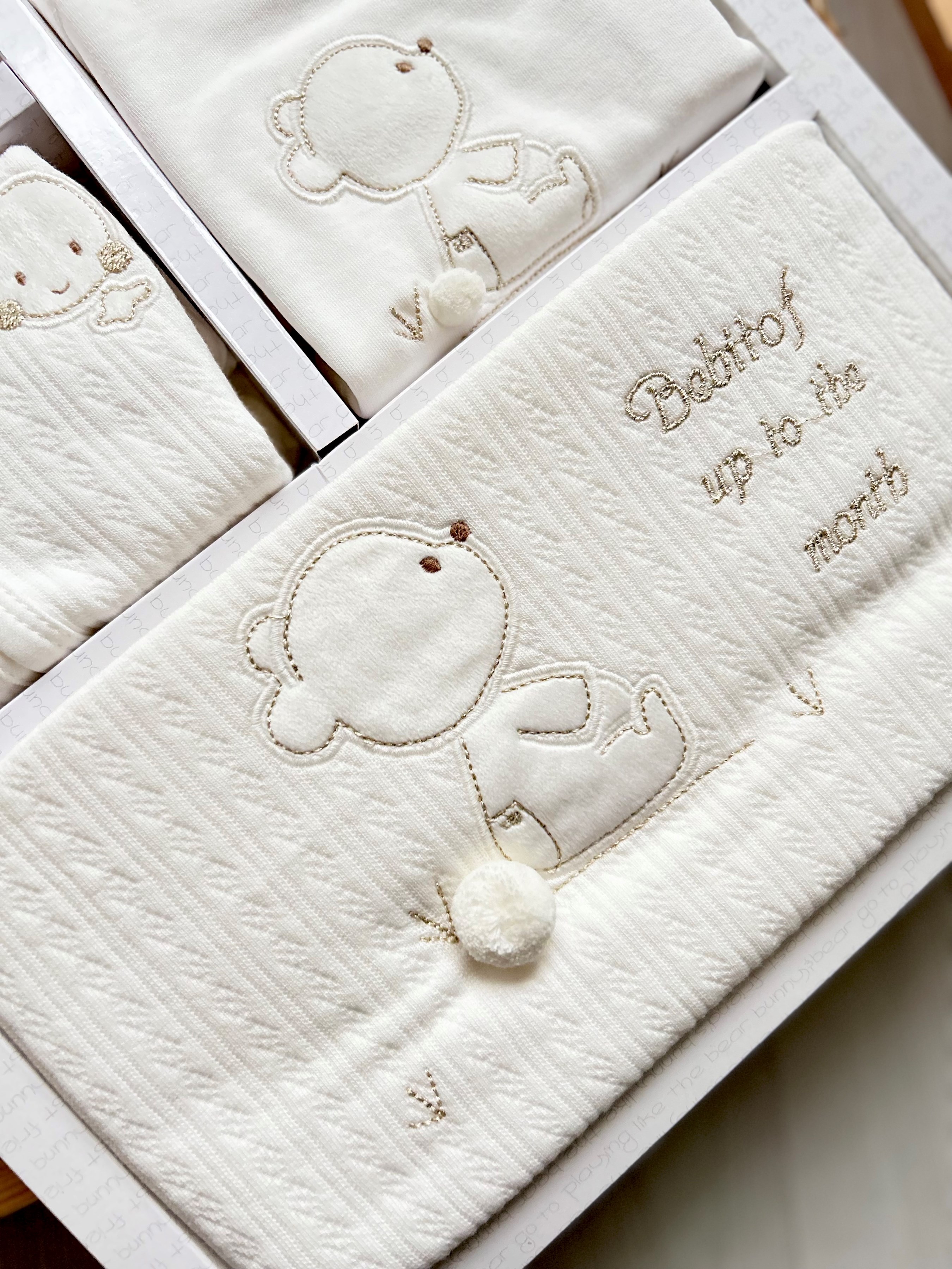 Ponpon Bear Detaylı %100 Pamuk 10 PARÇA Yenidoğan Unisex Set