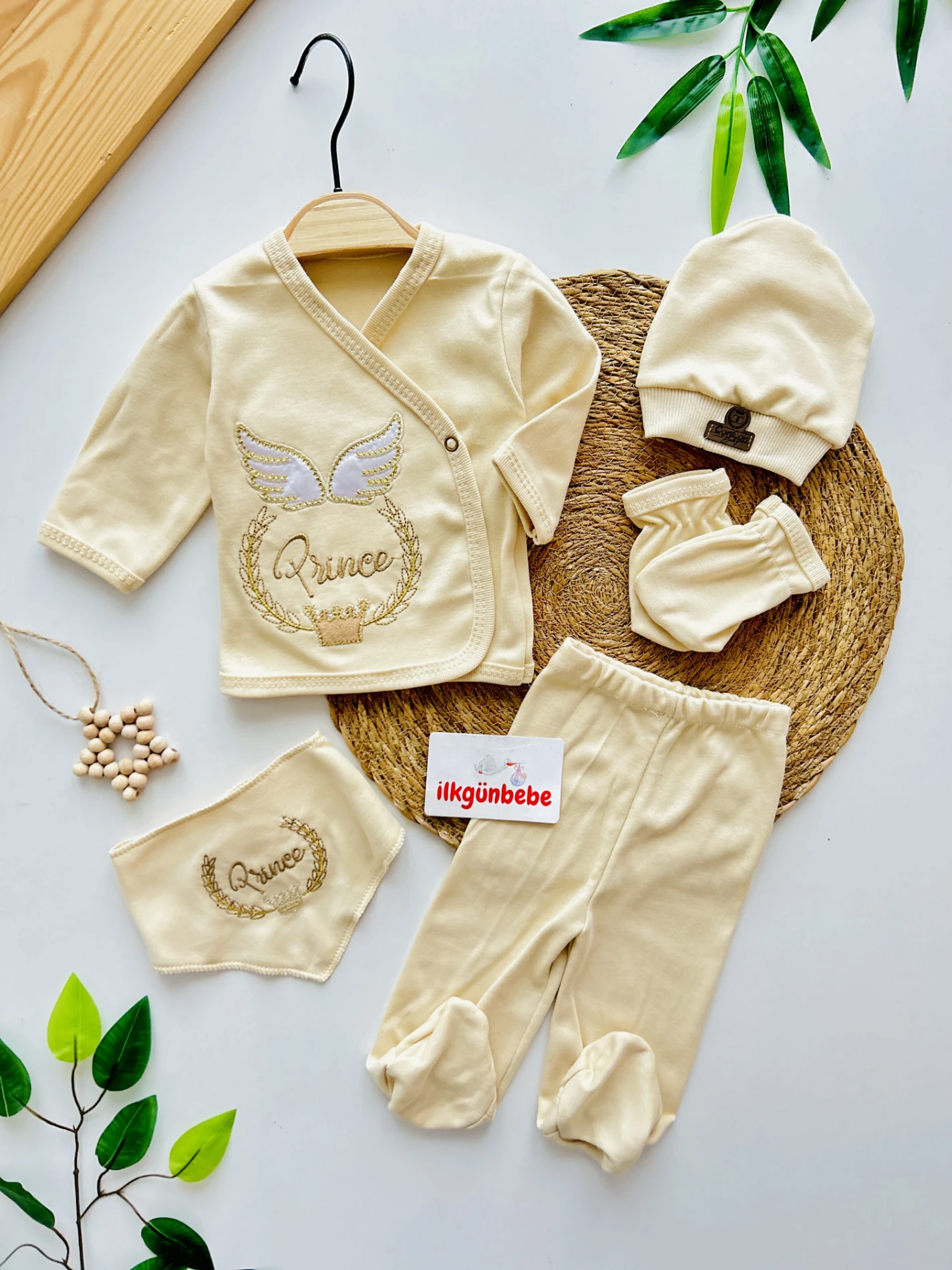 Prince Melek Kutulu 5 Parça Organik %100 Pamuk Kumaş Yenidoğan Hastane Çıkışı Seti