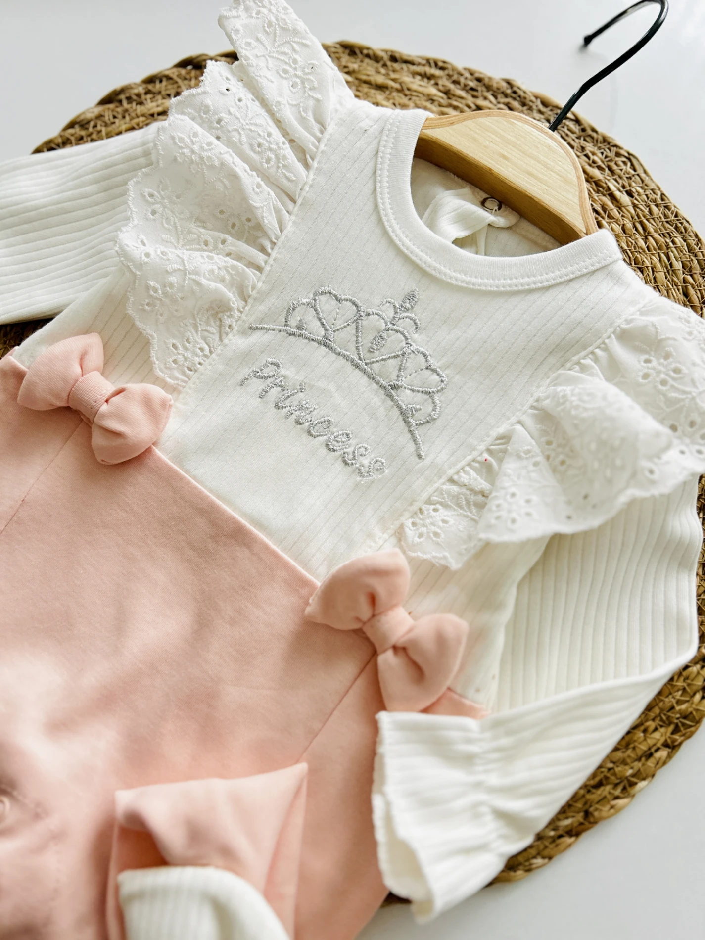 Princess Fırfır Detaylı Fiyonku Bandanalı %100 Pamuk Esnek Kumaş 2’li Tulum